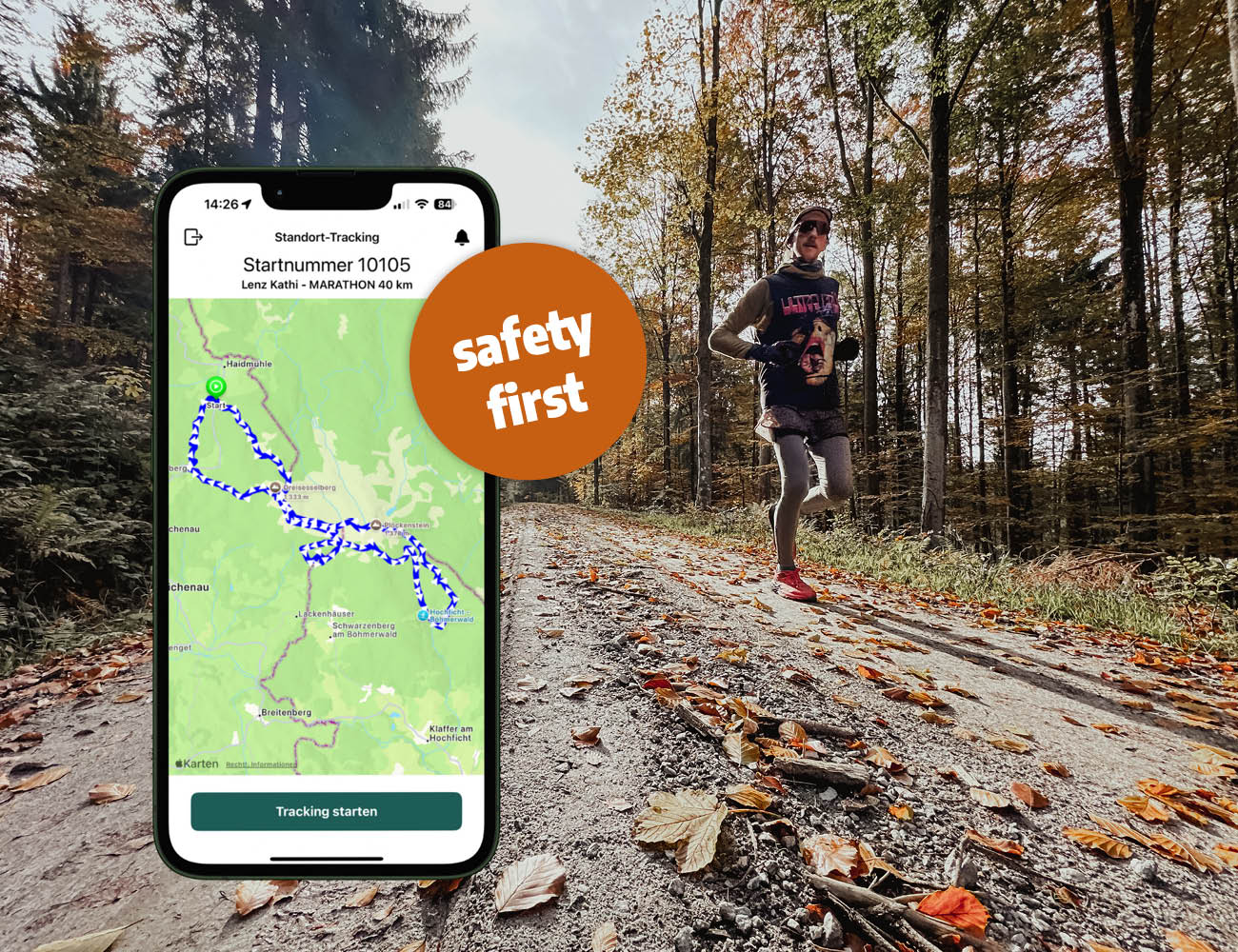 Für deine eigene Sicherheit tracken wir deine zurückgelegte Strecke – so können wir deinen Standort im Falle eines Notfalls zurückverfolgen. Zusätzlich kannst du für dich selbst überprüfen, ob du auf der richtigen Strecke bist.
